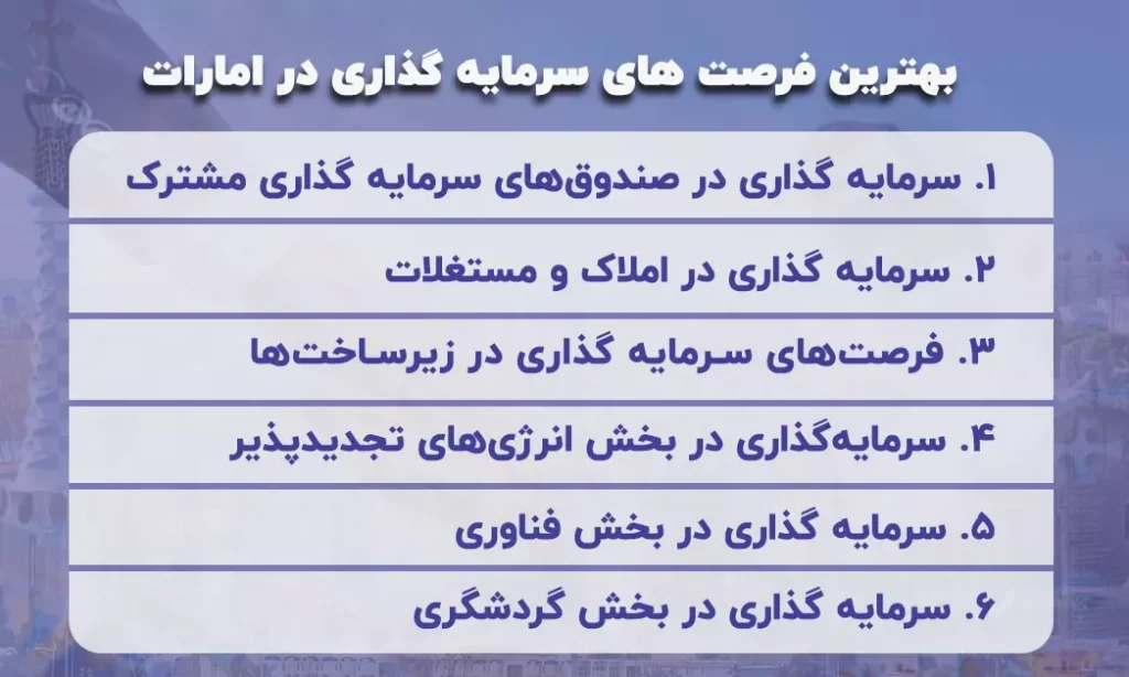 کسانی که به سرمایهگذاری پرسود علاقهمند هستند میتوانند فرصتهای سرمایه گذاری عالی امارات متحده عربی را در هتلهای لوکس، اجاره ملک و مشاغل مهماننوازی جستجو کنند.